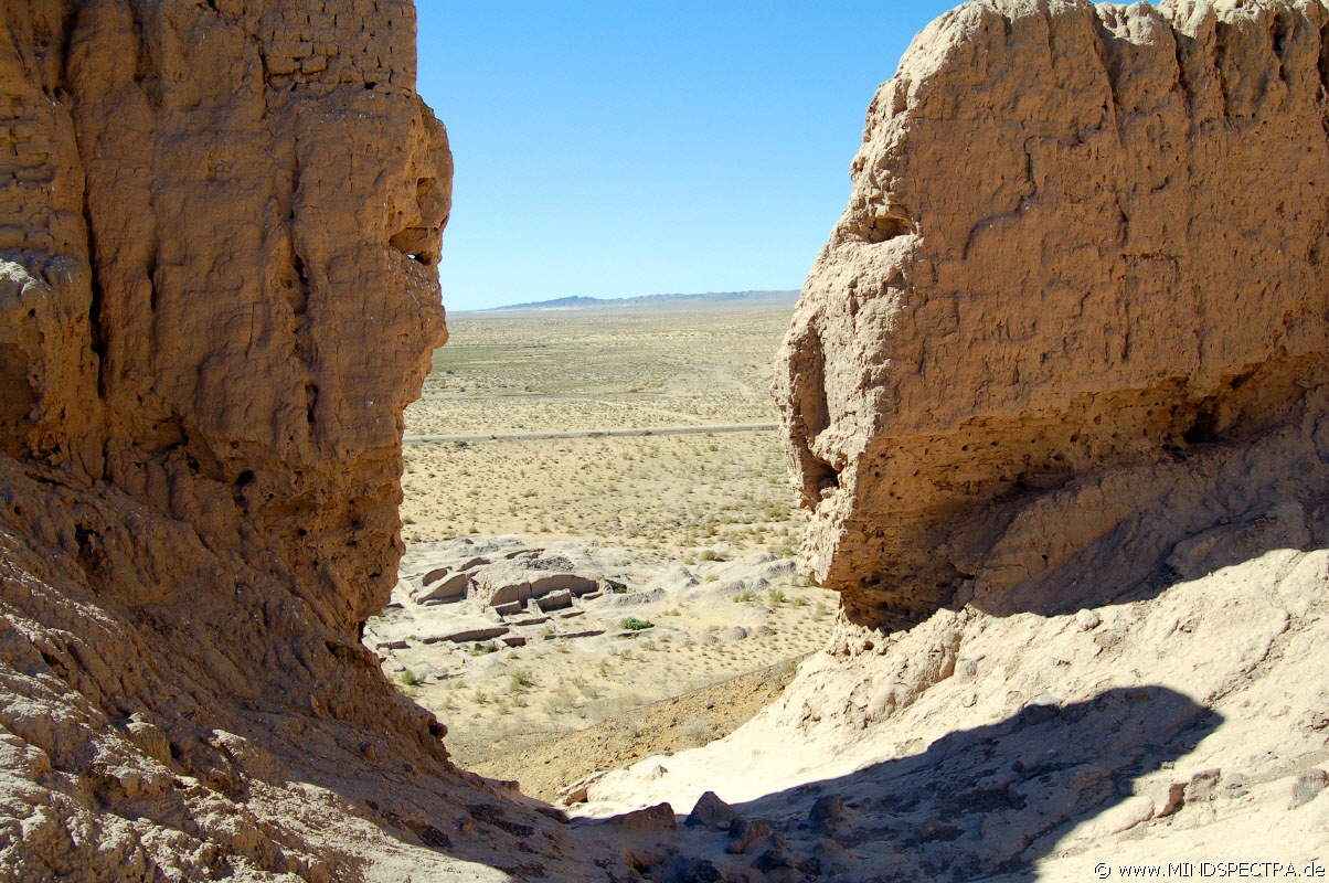 Das astroarchäologische Kungrad-Projekt, verbunden mit einer in Eigeninitiative organisierten Choresm-Expedition, war ausschlaggebend für alle nachfolgenden Forschungsreisen. Kungrad ist eine ausgesprochene Wüstenstadt in Karakalpakstan, einer autonomen Teilrepublik Usbekistans, innerhalb der Wüstengegenden des Aralsees. Von Kungrad aus startete unsere Expedition auf das Ustjurt-Plateau und in das geheimnisvolle Gebiet der drei Wüsten. In den Wüstenoasen entwickelte sich vor Urzeiten entlang des Amudarya eine Hochkultur, die als das vergangene Choresm in die Geschichte eingegangen ist und Spuren einer zarathustrischen Religion hinterlassen hat. Von der choresmischen Ära zeugen vor allem in der Kysylkum-Wüste, am rechtsseitigen Ufer des Amudarya, zahlreiche und kaum archäologisch erforschte, grandiose Wüstenstädte aus Lehm, die in der Landessprache als „Kala“ bezeichnet werden. Neben Koj-Krylgan-Kala konzentrieren sich einige bedeutende Kalas, wie Ayaz- und Toprak-Kala samt Dakhmah Chilpyk, in der Umgebung von Nukus, der Hauptstadt Karakalpakstans. Am linksseitigen Ufer des Amudarya, an der Grenze zur Karakum-Wüste, befinden sich zudem weitere legendäre historische Stätten, so der uralte Friedhof von Mizdakhan mit seinem sagenumwobenen, von sieben Kuppeln bedeckten „Grab des Riesen“.