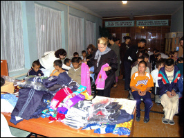 Natalja begleitete uns auf den großen Bazar. Sie kannte die meisten Stände, handelte die Preise aus und konnte uns gut beraten. Bei den riesigen Mengen, die wir einkauften, verbreitete sich wie ein Lauffeuer die Nachricht, dass "Amerikanski" da wären, um für Waisenkinder zu spenden. Die Situation war zwar etwas skurril, aber dennoch rührend, weil uns daraufhin alle weiteren Verkaufsstände mit einem Rabatt unterstützten. Kinder kamen mit Rollwagen für den Transport der vielen gefüllten Taschen herbeigeeilt. Am Ende waren wir selbst über die Menge an qualitativ guter Kleidung erstaunt, denn im Verhältnis zu Deutschland konnten wir hier wesentlich mehr für einen umgerechnet gleichwertigen Betrag erwerben.